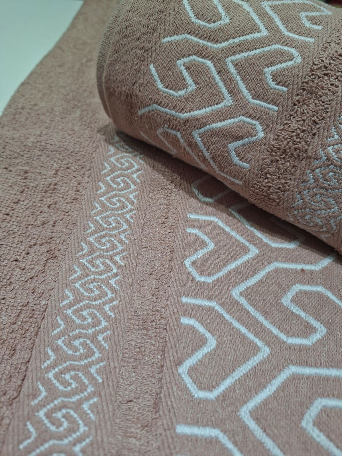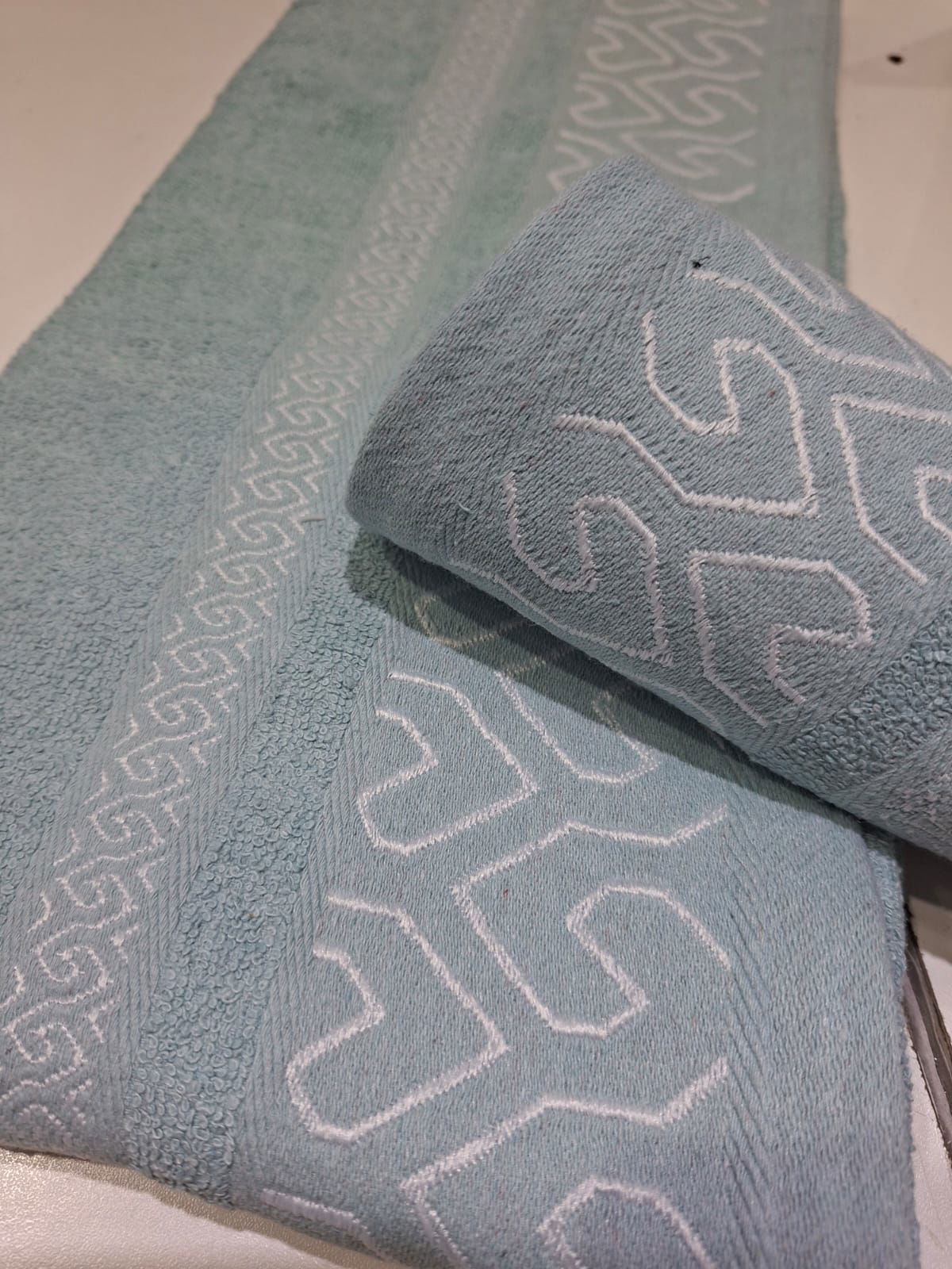 La toalla mide 50 cm de ancho y 70 cm de largo, mientras que el toallón, con un generoso ancho de 70 cm y un largo de 140 cm, asegura una cobertura completa. Su composición de algodón 100% garantiza una absorción superior, manteniendo tu piel seca y suave después de cada baño.