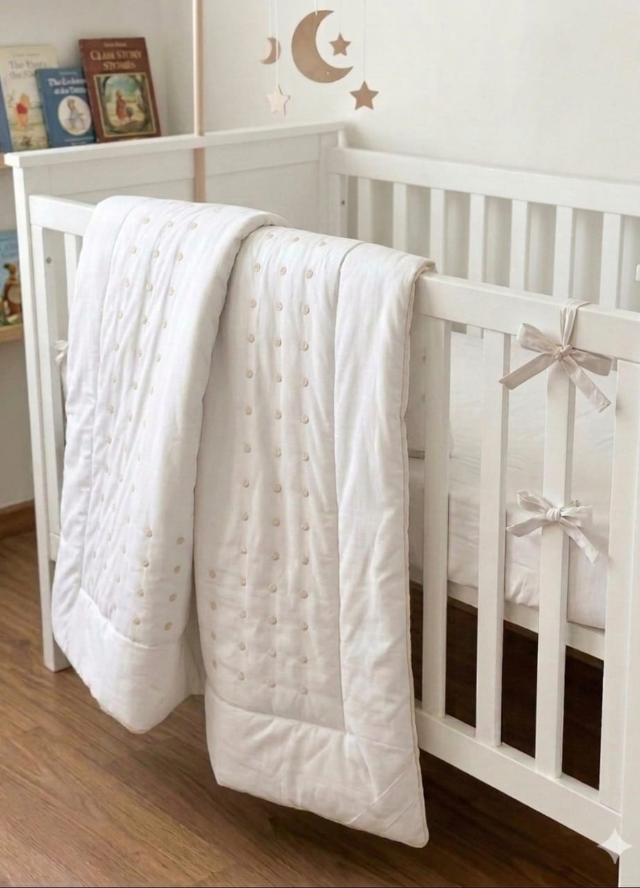 Este acolchado combina la trayectoria y calidad de Danubio con un diseño pensado para la máxima suavidad. Su característica textura de bodoques (plumetí) no solo es visualmente encantadora, sino que ofrece un tacto mullido y acogedor, ideal para acompañar el sueño más profundo de los más chiquitos.